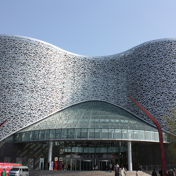 鏤空雕花鋁單板的工藝標準:厚度低于2.0mm的鋁單板不能用于外墻裝飾。其次經(jīng)過雕花鏤空處理的鋁單板,具有透風(fēng)的特點,比普通幕墻鋁單板受風(fēng)力影響更大,若厚度不足,就會出現(xiàn)變形的現(xiàn)象,影響整體美觀,一般戶外使用雕花鏤空鋁單板的厚度控制在2.5mm以上。